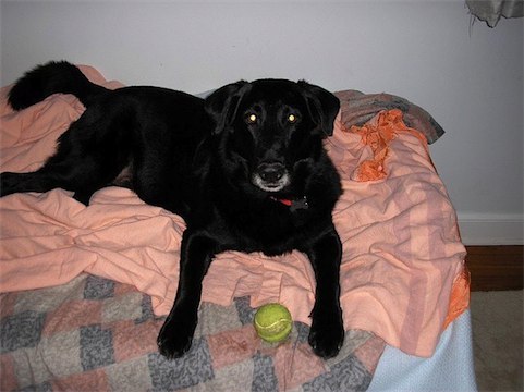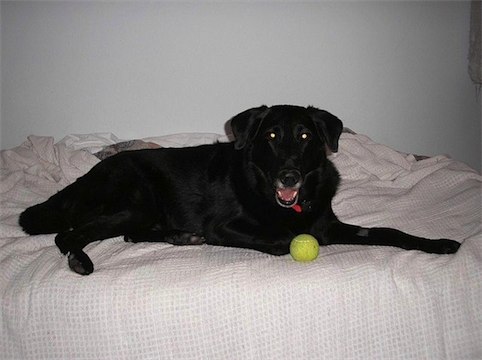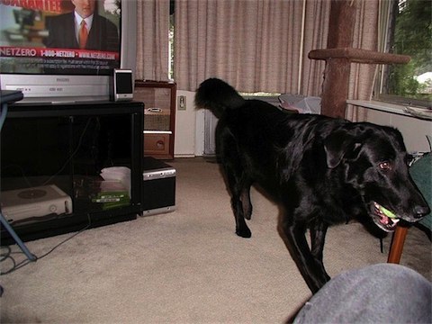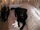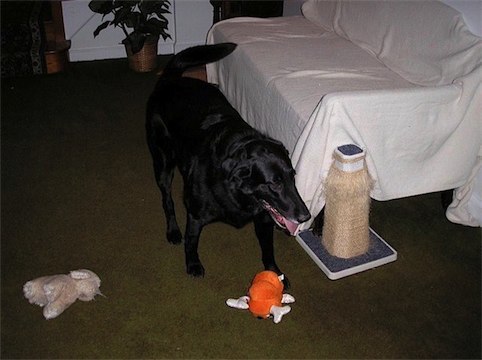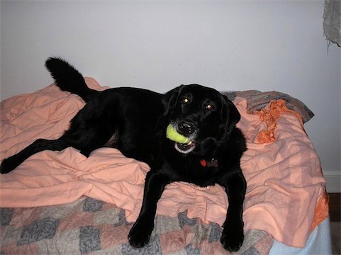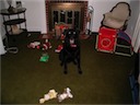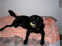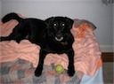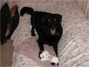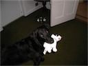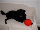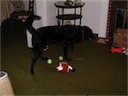 In addition to stuffed toys, he likes to chew balls